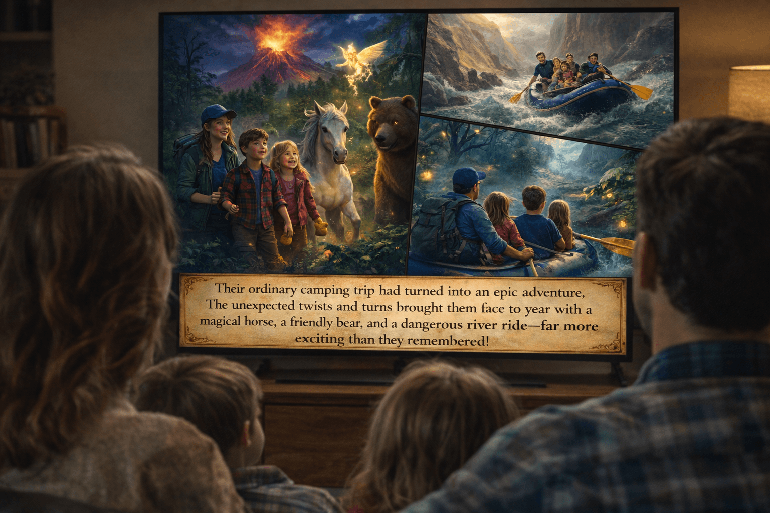 For example, camping photos can become an illustrated adventure where familiar people and places appear in a magical or exaggerated setting. This anchors exploration in real memory, transforming everyday moments into stories that feel intimate and worth revisiting.